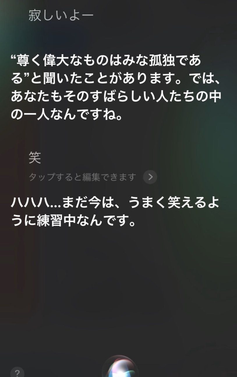 結構何年か前のSiriさんからの答え寂しいと言ったら褒めてくれた続きをみる···