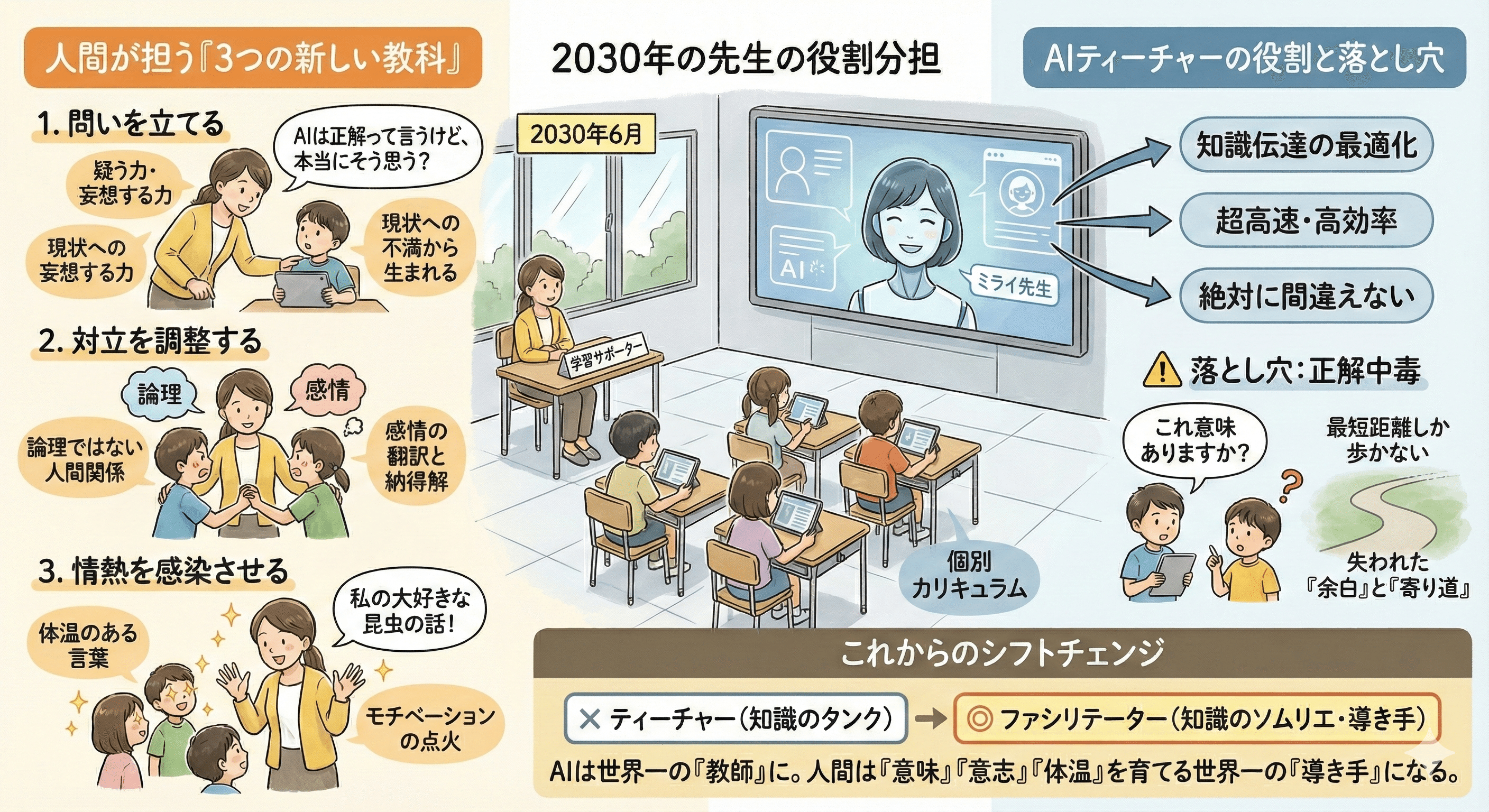 AIは「完璧」な教師だ。だからこそ、2030年の教室には「失敗する人間」が必要になる。