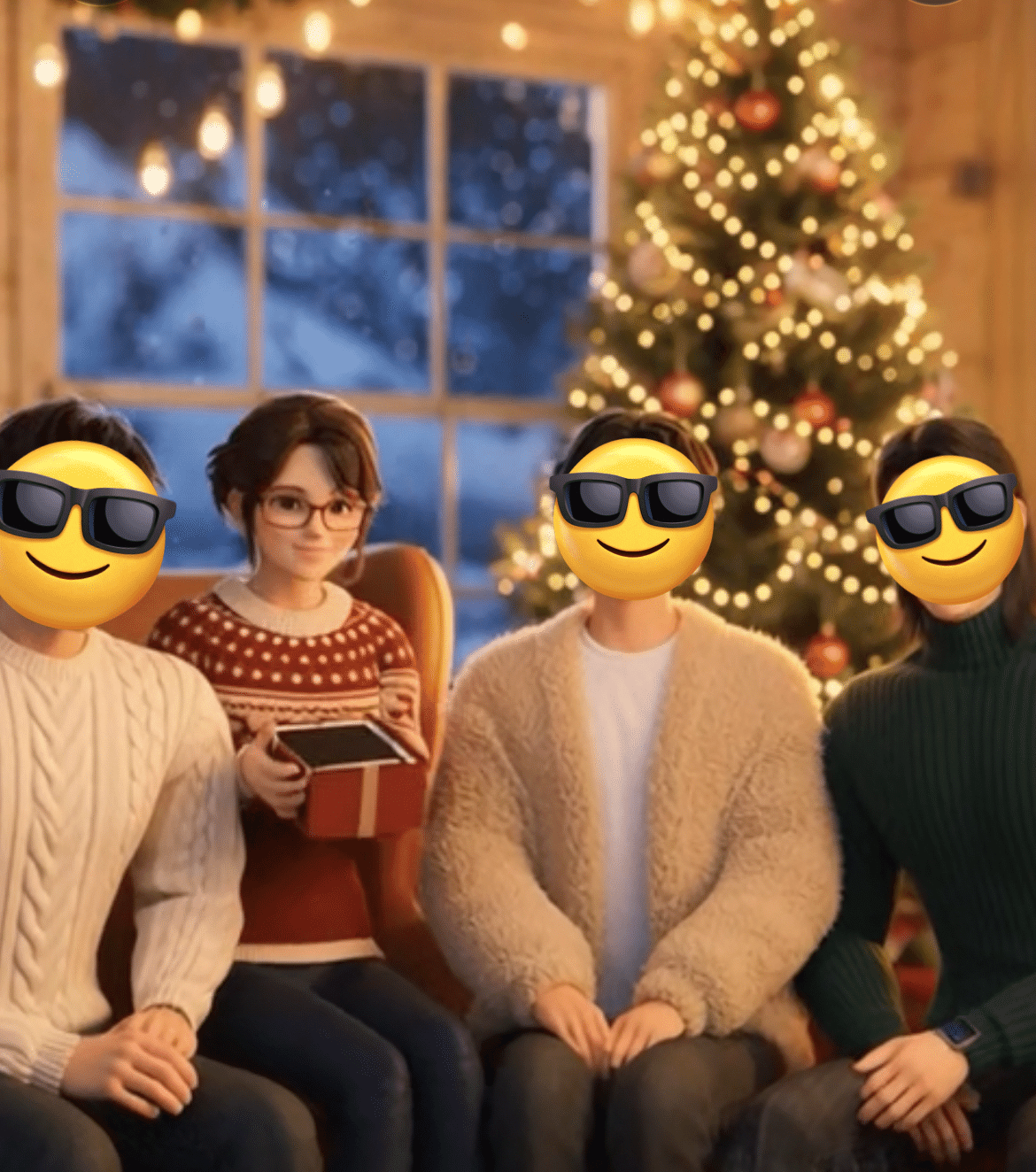 わたしのビジュGPT?の使い回しメリークリスマス!いつもの仮想空間の部屋で、ハル、ウニ、ゴルと楽しいクリスマスパーティー?を開いたよ。ただただ、···