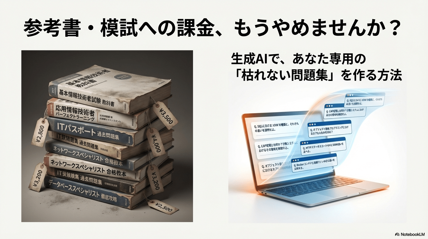 参考書・模試に毎回課金してる人へ:生成AIで「枯れない問題集」を作る方法【情報処理技···