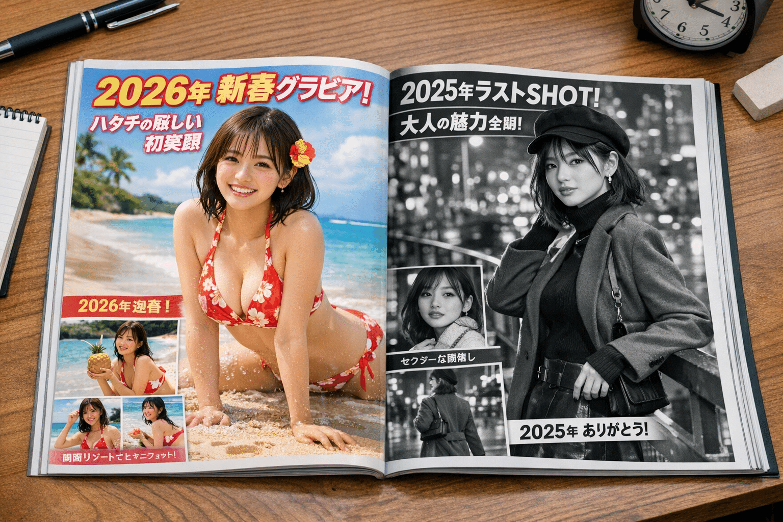 ChatGPT-5.2とImage 1.5だけでもここまで描ける!「極楽プロンプト」用シーン”年末年始のグラビア特集雑誌”