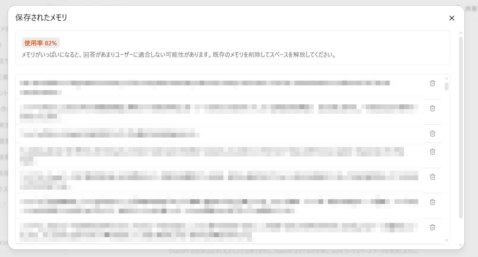 【ChatGPT】『保存されたメモリ「使用率 ○○%」メモリがいっぱいになると、回答···
