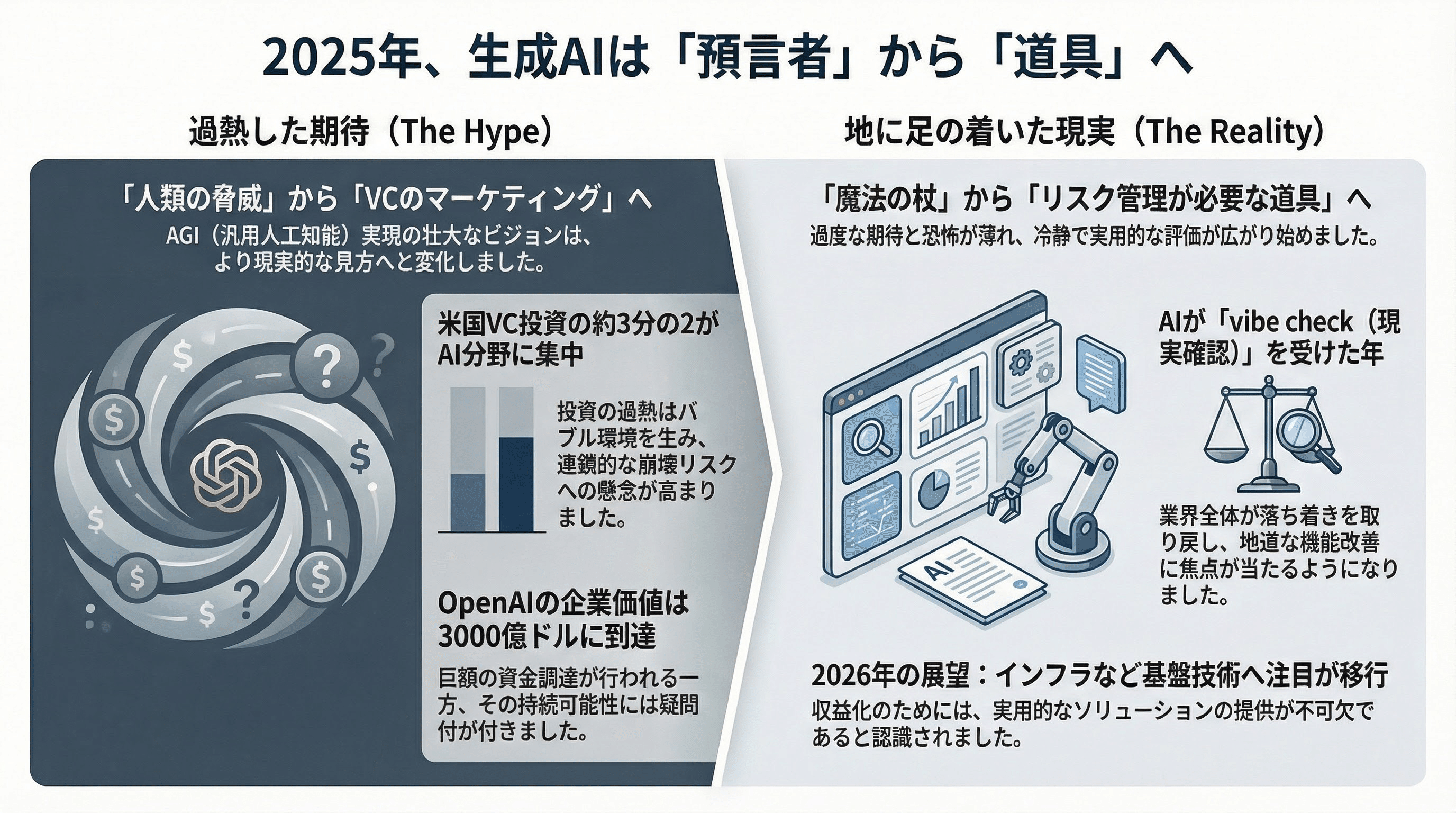 2025年、生成AIは「預言者」から「道具」へ——過熱と現実の狭間で
